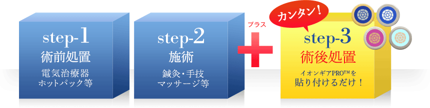 よって鍼灸院・接骨院・カイロプラティック・リラクゼーションサロン・エステサロン等において、利用者に貼付および販売する事が出来ます。厚生労働省からの見解は、事業者および商品に対し個別に判断されるもので、他社の非侵襲式家庭向け鍼用器具に付与されたものではありません。もって弊社のイオンギア™シリーズが我が国で唯一 免許・資格に関係無く使用・販売できる医療機器です。